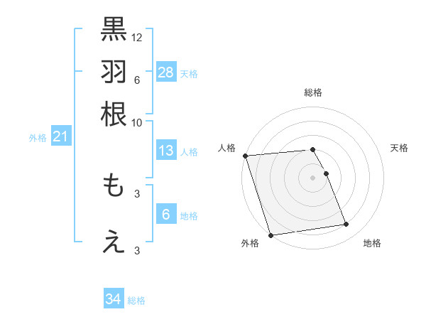 黒羽根 もえさんを姓名の画数から五運を鑑定