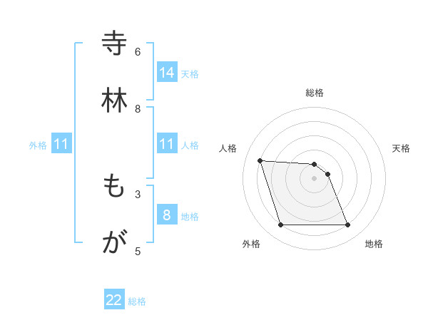 寺林 もがさんの総格は22画の1点!