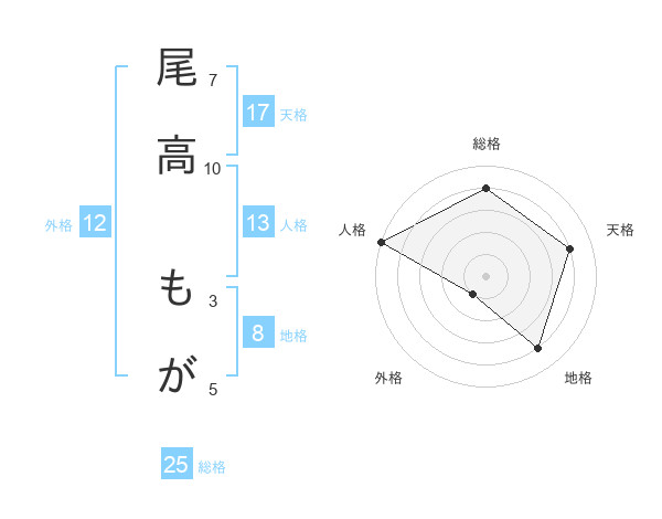 尾高 もがさんの天格は17画の4点!