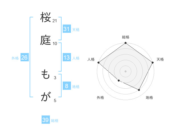 桜庭 もがさんを姓名の画数から五運を鑑定