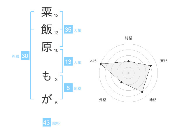 粟飯原 もがさんを姓名の画数から五運を鑑定