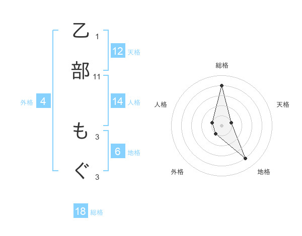 乙部 もぐさんを姓名の画数から五運を鑑定