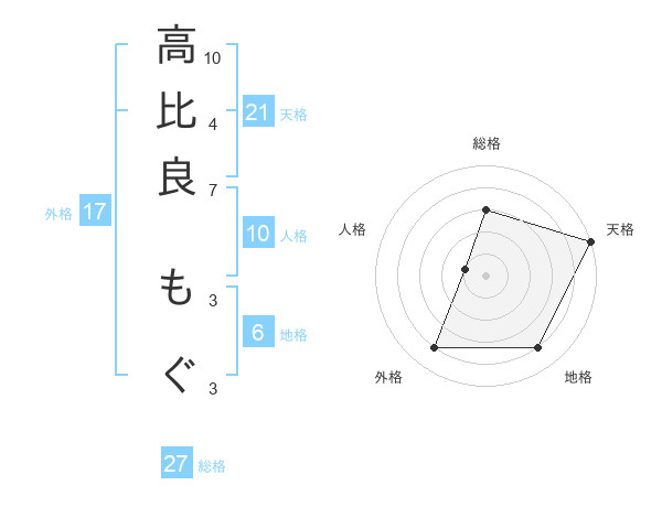 高比良 もぐさんの天格は21画の5点