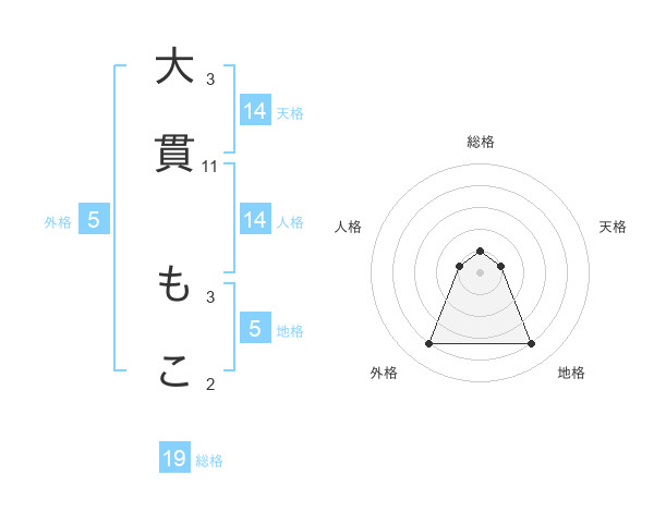 大貫 もこさんの外格は5画の4点!