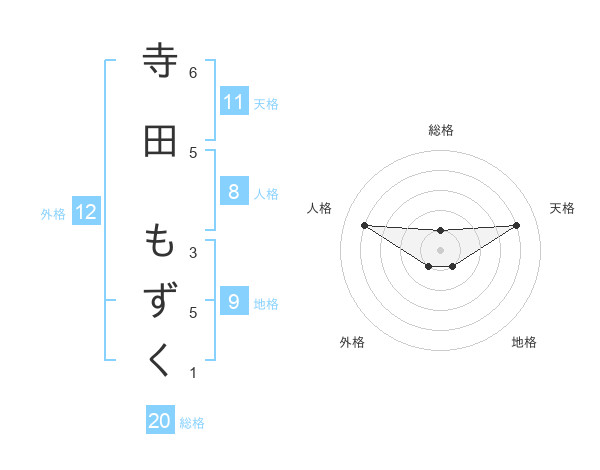 寺田 もずくさんを姓名の画数から五運を鑑定