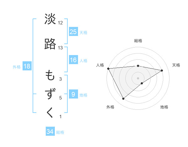 淡路 もずくさんを姓名の画数から五運を鑑定