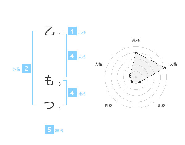 乙 もつさんの総格は5画の4点!