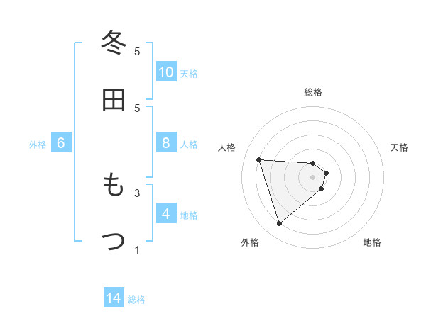 冬田 もつさんの天格は10画の1点!