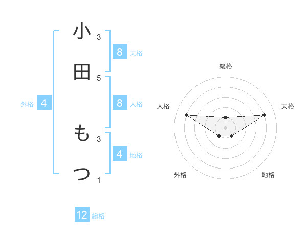 小田 もつさんの天格は8画の4点!