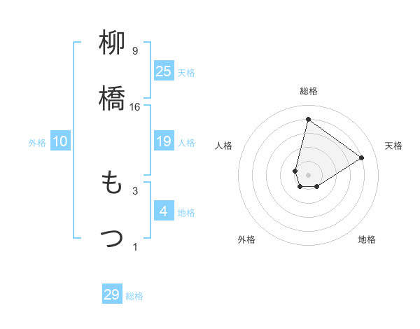 柳橋 もつさんを姓名の画数から五運を鑑定
