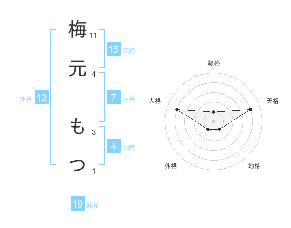 梅元 もつさんの天格は15画の4点!