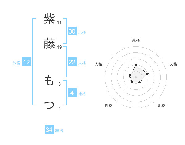 紫藤 もつさんの総格は34画の2点!