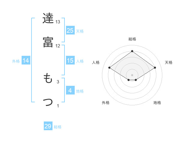達富 もつさんの総格は29画の4点!