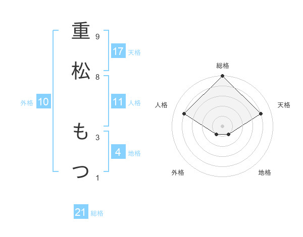 重松 もつさんの総格は21画の5点!