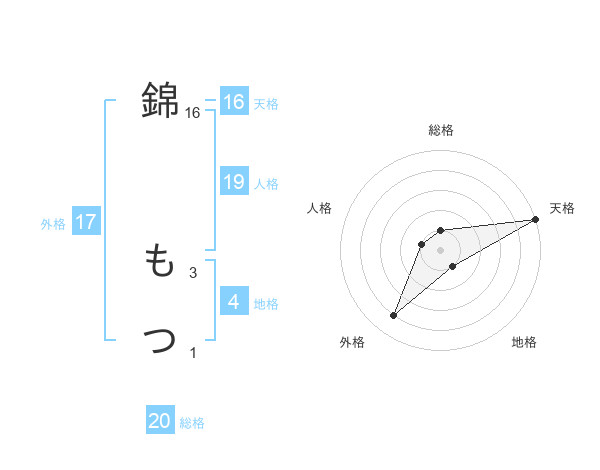 錦 もつさんの外格は17画の4点!