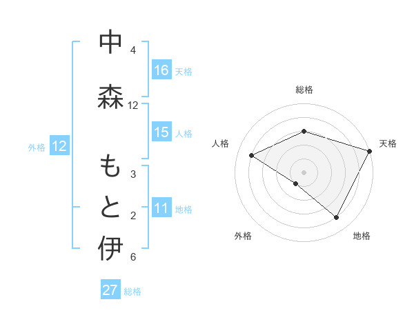 中森 もと伊さんの総格は27画の3点!