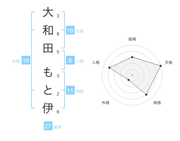 大和田 もと伊さんを姓名の画数から五運を鑑定