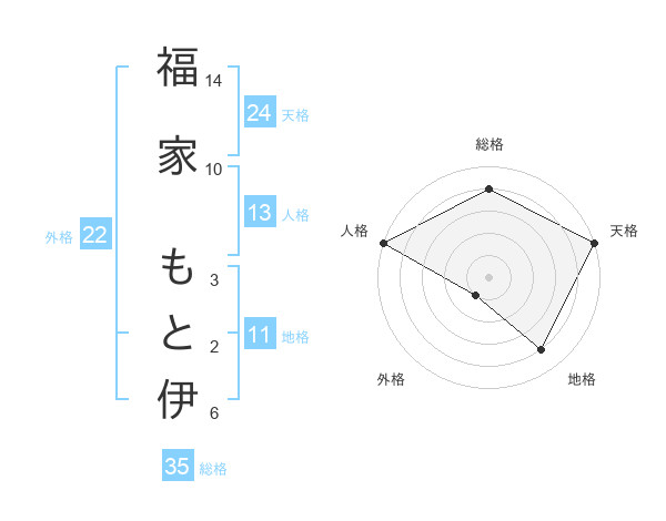 福家 もと伊さんを姓名の画数から五運を鑑定