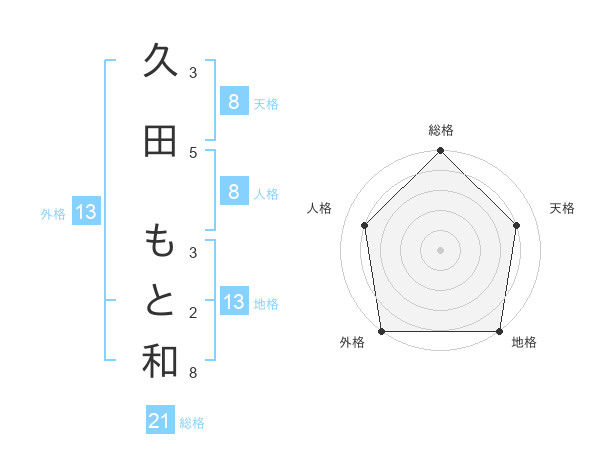 久田 もと和さんの地格は13画の5点!