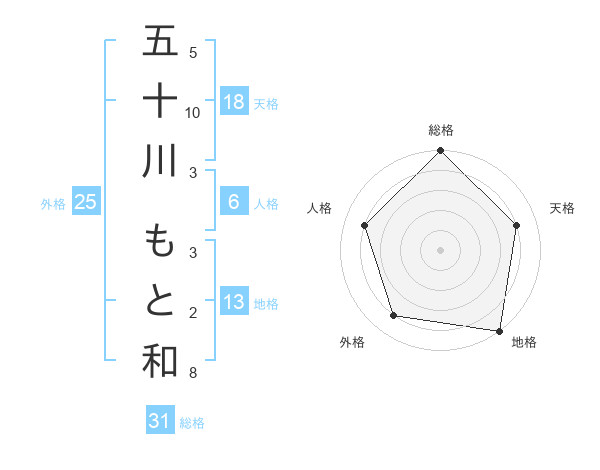 五十川 もと和さんを姓名の画数から五運を鑑定