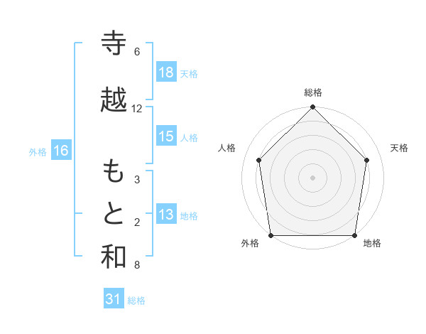 寺越 もと和さんの天格は18画の4点!