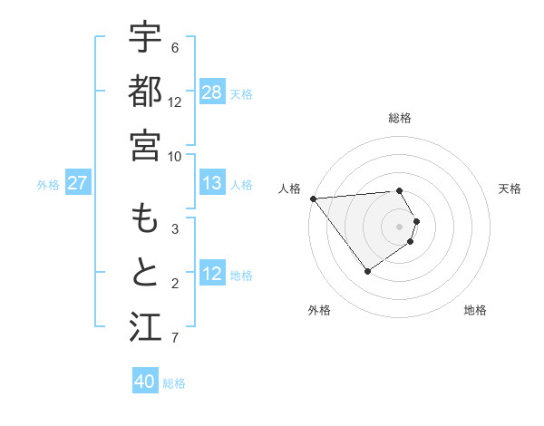 宇都宮 もと江さんを姓名の画数から五運を鑑定