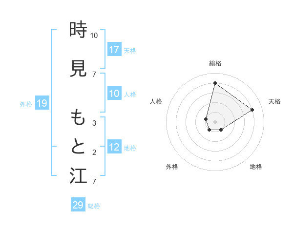 時見 もと江さんの総格は29画の4点!