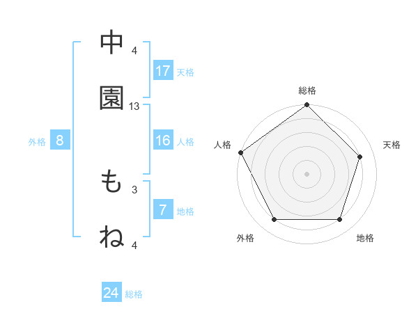 中園 もねさんの外格は8画の4点!
