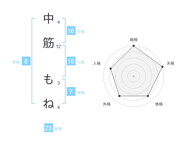 中筋 もねさんの天格は16画の5点!