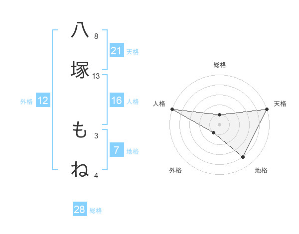 八塚 もねさんの総格は28画の1点!