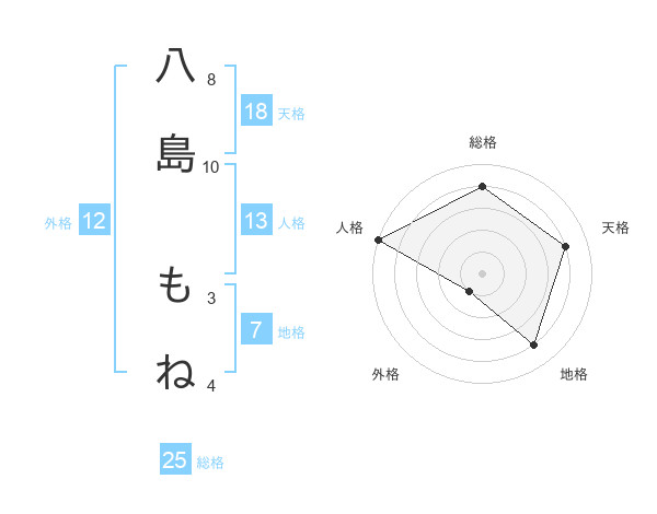 八島 もねさんの天格は18画の4点!