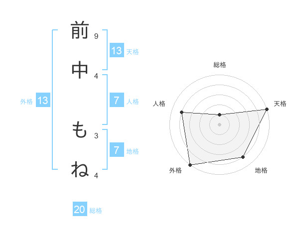 前中 もねさんの外格は13画の5点!