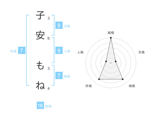子安 もねさんの総格は16画の5点!