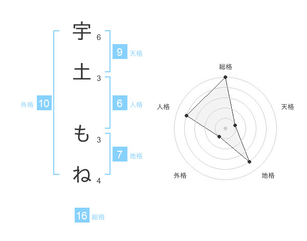 宇土 もねさんの総格は16画の5点!