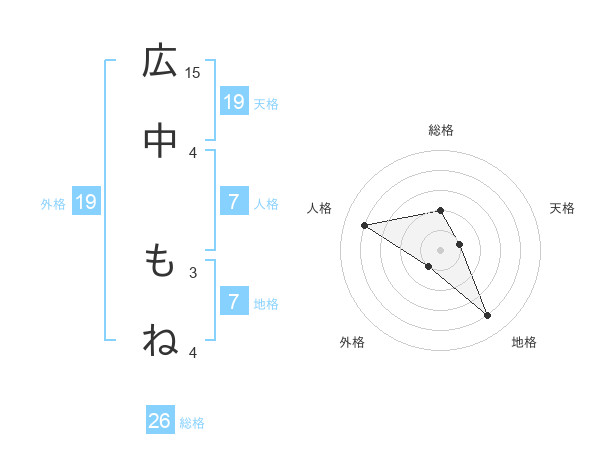 広中 もねさんの地格は7画の4点!