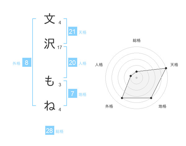 文沢 もねさんの天格は21画の5点!