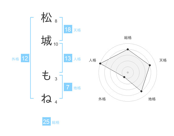 松城 もねさんの総格は25画の4点!