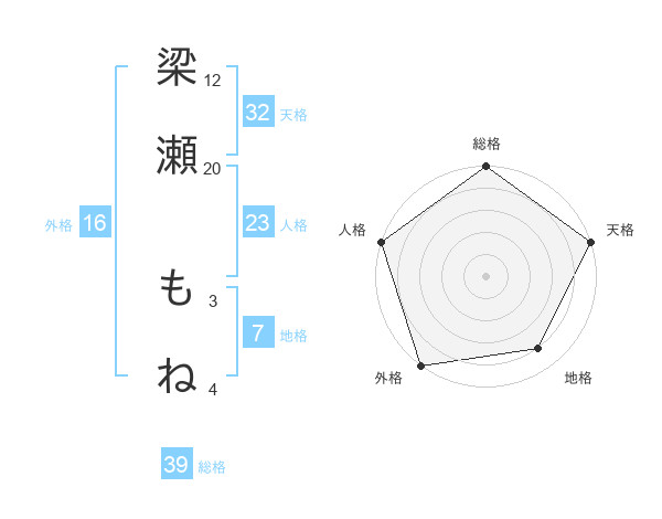 梁瀬 もねさんの天格は32画の5点!