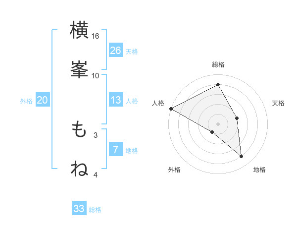 横峯 もねさんの天格は26画の2点!