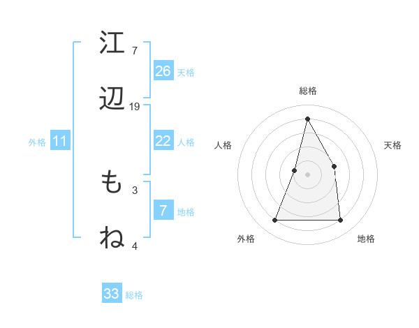 江辺 もねさんの総格は33画の4点!
