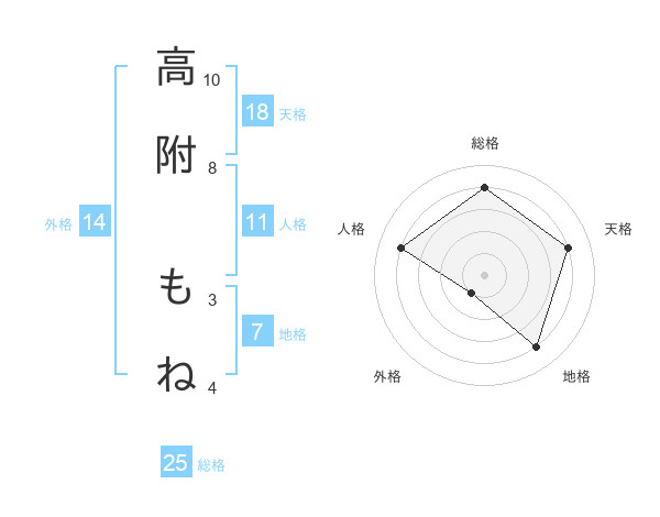 高附 もねさんの天格は18画の4点!