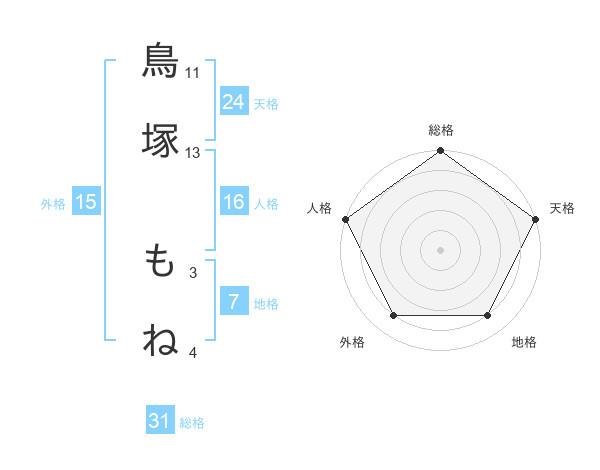 鳥塚 もねさんの総格は31画の5点!