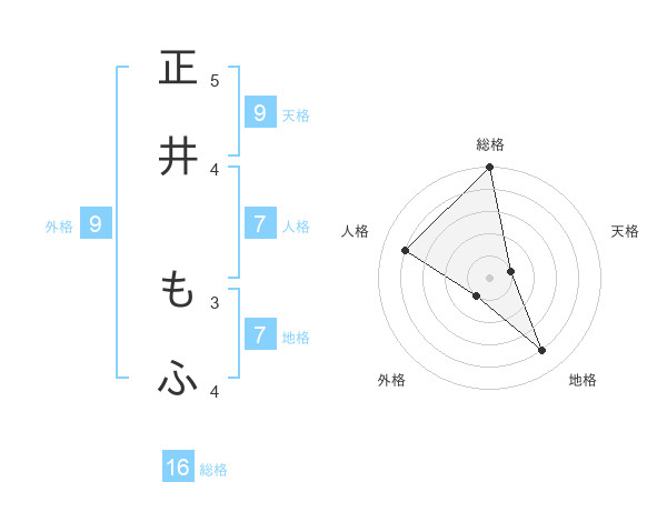 正井 もふさんの天格は9画の1点!