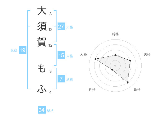 大須賀 もふさんを姓名の画数から五運を鑑定