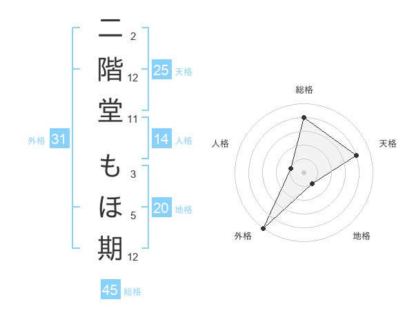 二階堂 もほ期さんを姓名の画数から五運を鑑定
