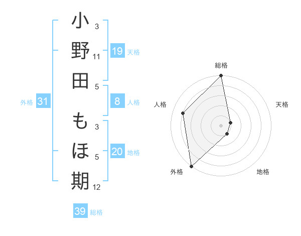 小野田 もほ期さんの外格は31画の5点!