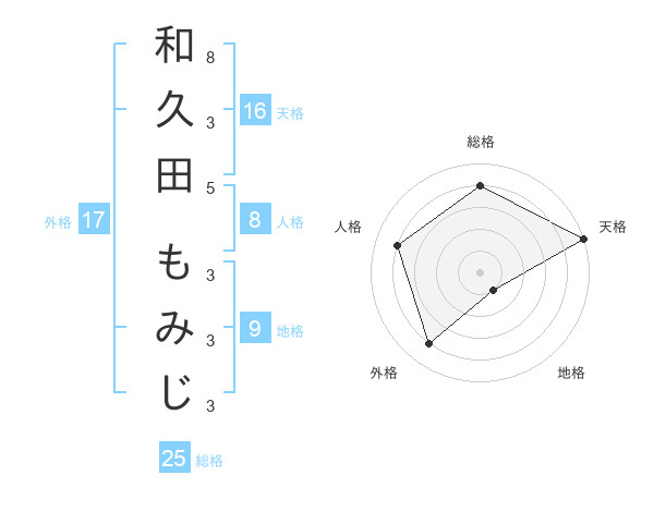 和久田 もみじさんを姓名の画数から五運を鑑定