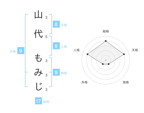 山代 もみじさんの天格は8画の4点!
