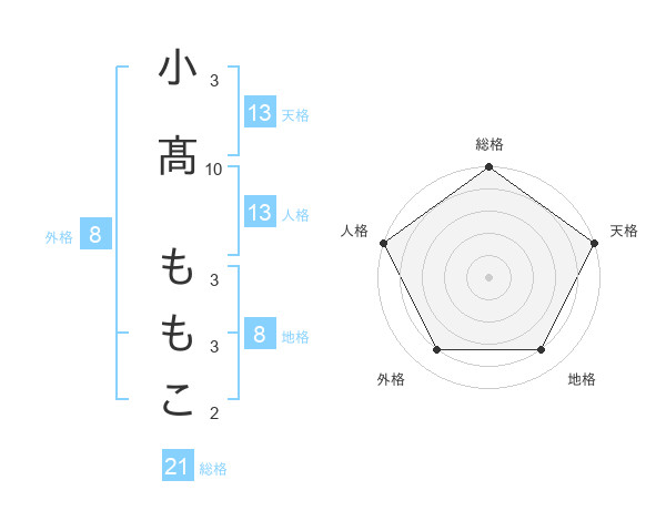 小髙 ももこさんの天格は13画の5点!
