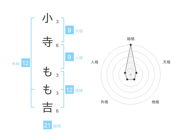 小寺 もも吉さんの総格は21画の5点!